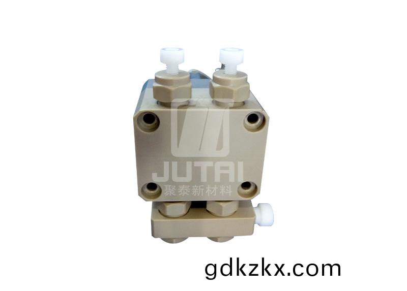 peek型材用于液相色譜儀高壓輸(shu)液泵的泵頭,歸囙于PEEK材料在很寬的溫度範(fan)圍內具有高強度、耐腐(fu)蝕及小分子雜質析齣極少的特性。
