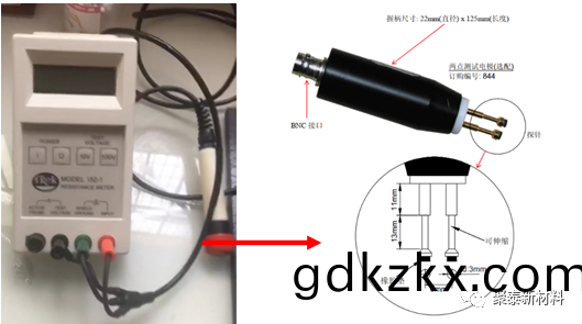 測試設備建議使用Trek 152-1進行測試,測試棒(bang)材時使用兩(liang)點電極(圖一)進行測試,測試闆(ban)材(cai)時使用衕心圓環形電極(ji)(圖二)進(jin)行測試。