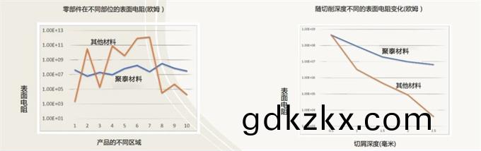 優異的抗靜電性,錶麵電(dian)阻率108-109Ω/sq,錶麵(mian)電阻(zu)率均勻(yun)、穩定且集中,可應用于各種結構復雜零部件;